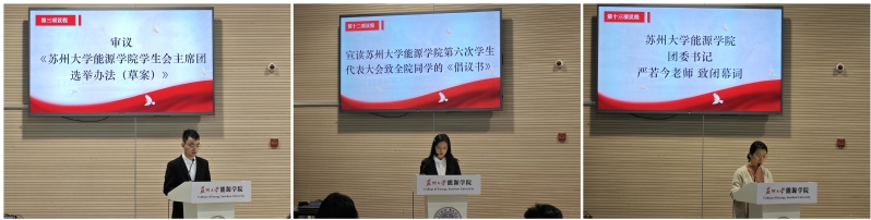 张丛锦同学宣读《致全院同学的倡议书》,号召全院同学坚定理想信念、锤炼品德修养、勇于创新实践、弘扬勤俭风尚,在强国建设中书写青春篇章。严若今老师致闭幕词,向新当选委员和主席团成员表示祝贺,希望新一届学生会不忘初心、担当使命,发挥桥梁纽带作用,团结带领全院同学为学院发展和能源事业进步贡献青春力量。大会在激昂的共青团团歌声中圆满闭幕。